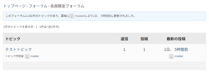 メニューからフォーラム(掲示板と表示される場合もあります)をクリックするとフォーラム一覧が表示されます。