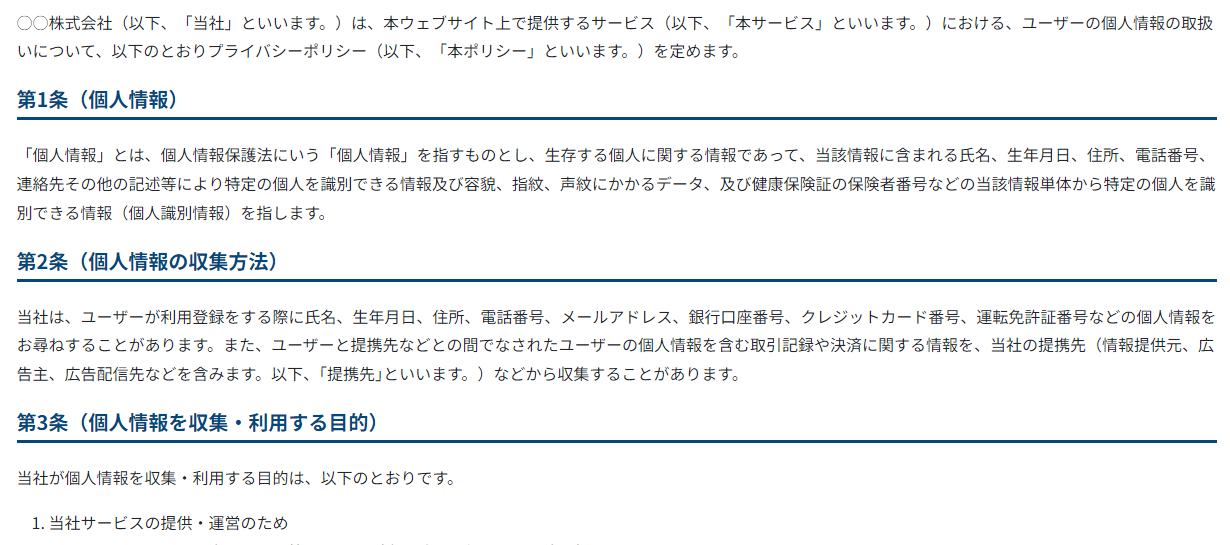 メニューから個人情報保護方針、特商法に基づく表記、利用規約、運営者情報をクリックし、それぞれのページを見ることが出来ます。